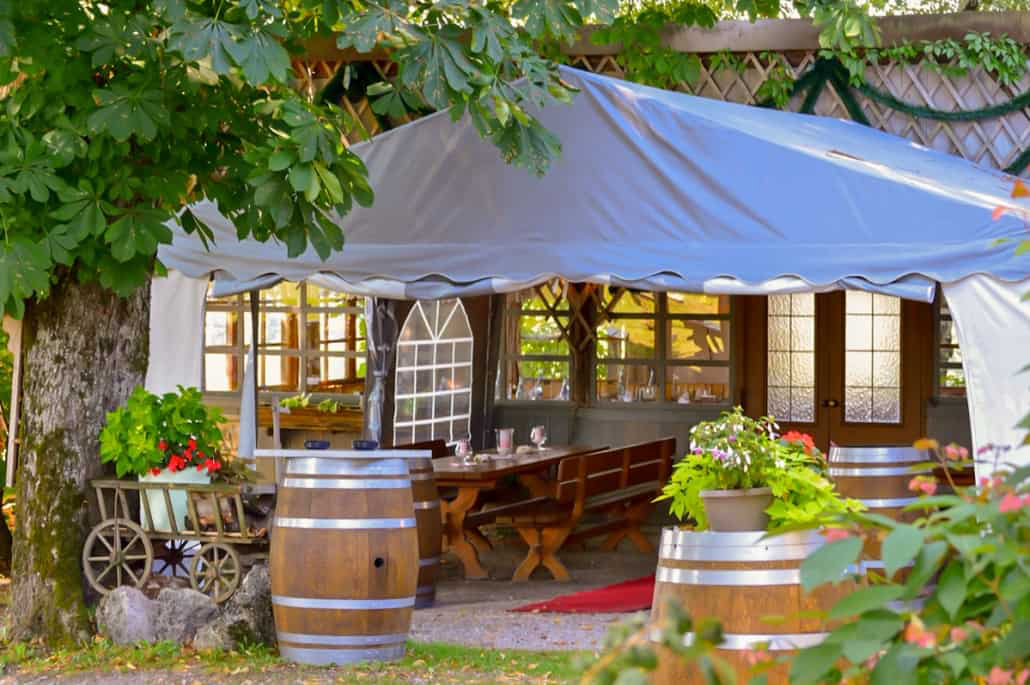 Idyllisch gelegener Wirtsgarten mit bayrisch gemütlicher Atmosphäre.